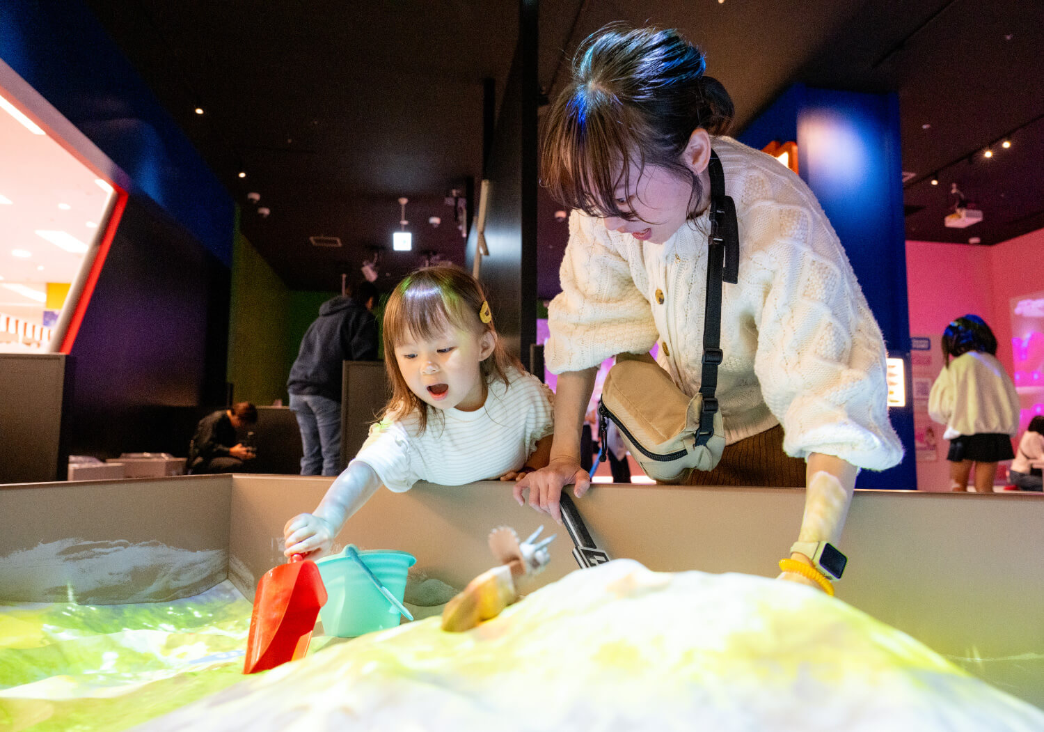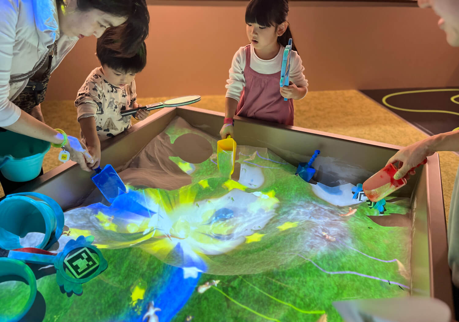 砂の形に合わせて地形が変化する”未来の砂遊び”を、トミカやアニアと一緒に楽しもう。