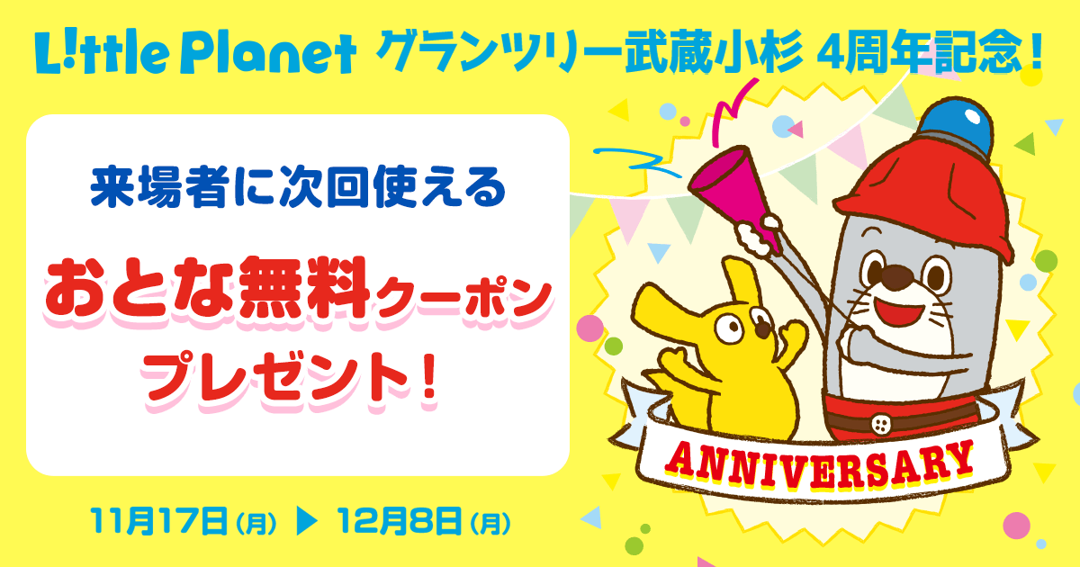 【武蔵小杉】4周年記念!来場者に「次回おとな無料クーポン」プレゼント