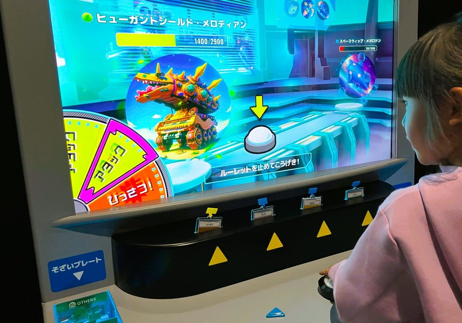 マシン上に用意されている、動物や乗り物、食べ物など100種以上の「そざいプレート」の中から、モンスターの元となるプレートを選択します。マシンのスロットに差し込むとAI生成の技術によって「そざい」が“混ぜ”られ、オリジナルのモンスター「マゼモン」が誕生!