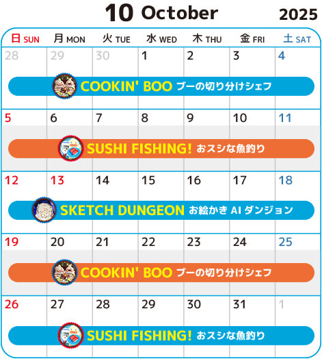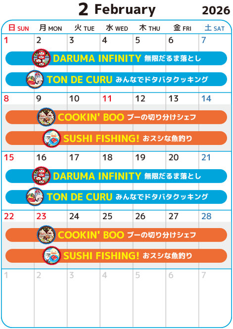 - ※アトラクションの内容は予告なく変更、中止する場合がございますのでご了承ください。