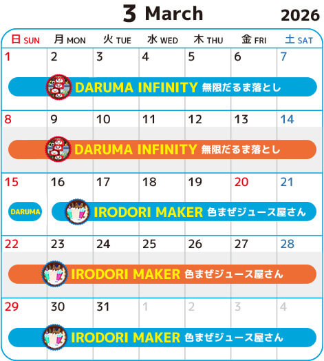 隔週アトラクションの運営予定