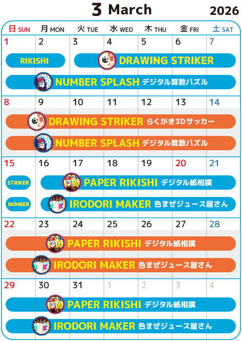 隔週アトラクションの運営予定