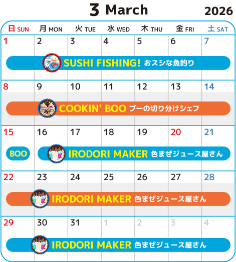 - ※アトラクションの内容は予告なく変更、中止する場合がございますのでご了承ください。